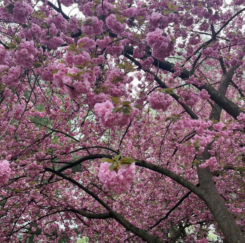 As I walked past a strip of rather modest houses, I was greeted in a sea of green by a fluffy, pink flower of a tree. The tree’s branches shot upwards in a nesting bundle with the longer, lower branches serving as the bouquet’s foundation. The inner branches had steeper slopes and had grown sharply towards the sky, though many were crookedly shaped and bore off-shooting, twig-like branches. Most of the flowered parts of the tree were covered in small, crumpled bunches of a dusty amaranth color. There were sporadic placements of bubblegum-colored flowers that looked like uncoupled pom-poms. The gentle contrast of color made the tree mesmerizing and I found that I had come to a full stop to gawk at it. The base of the trunk was entrenched by a sea of tall, thick grass and three coral-colored tulips. The home that sat just beyond the tree was rather lackluster: a tan, two-story home with evergreen trim along the windows.