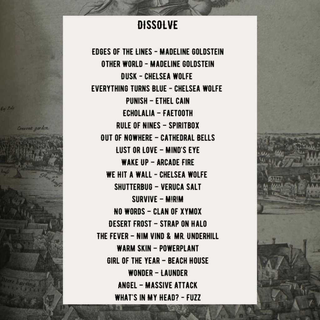 Here is a cultivated list of songs that I feel like I can fall, or almost melt into. The kind of songs you’d fall into a pool to, or fall into your bed listening to. Relaxing but with a sense of doom, in an acknowledging way that soothes the anxiety.